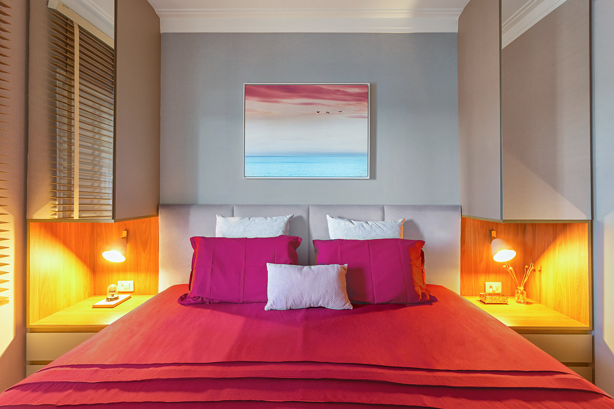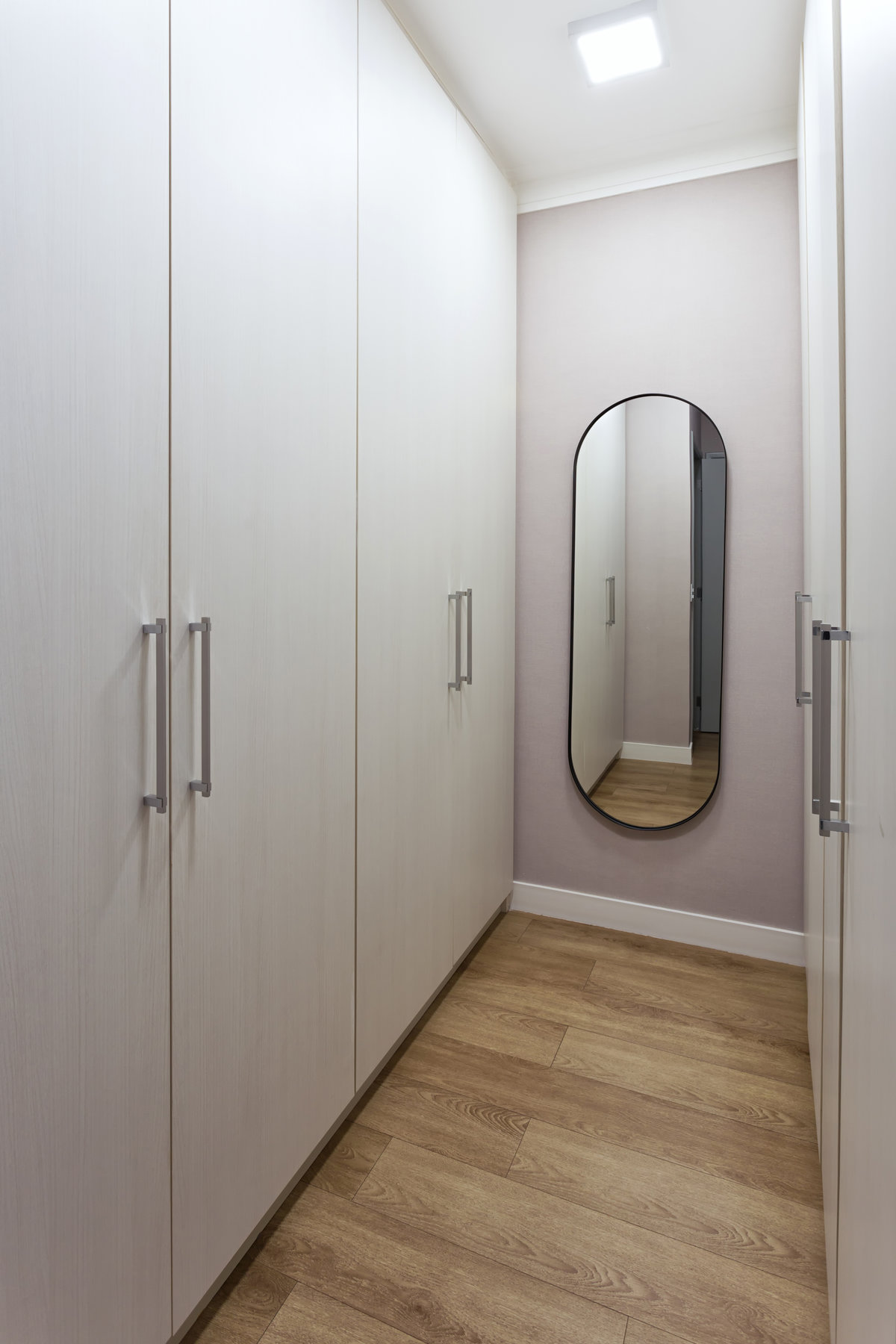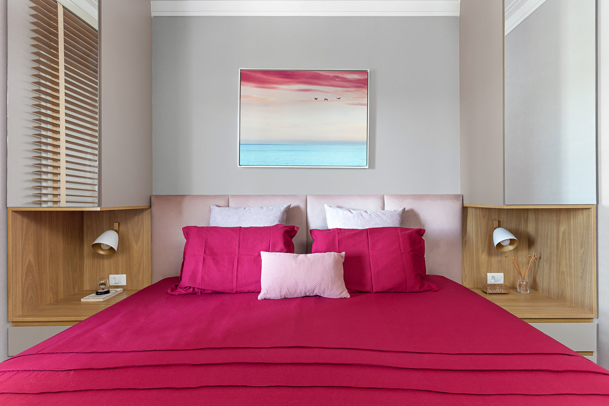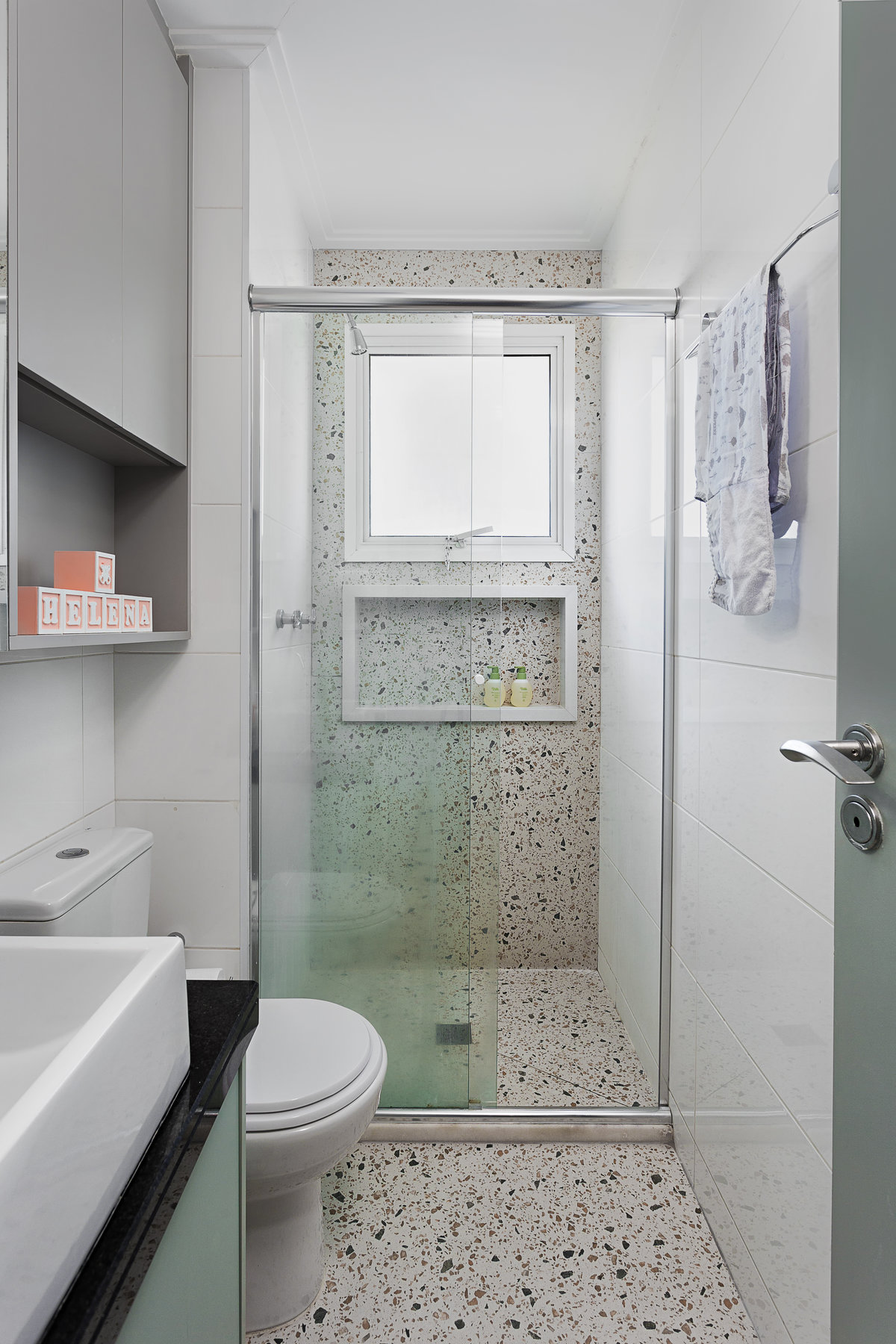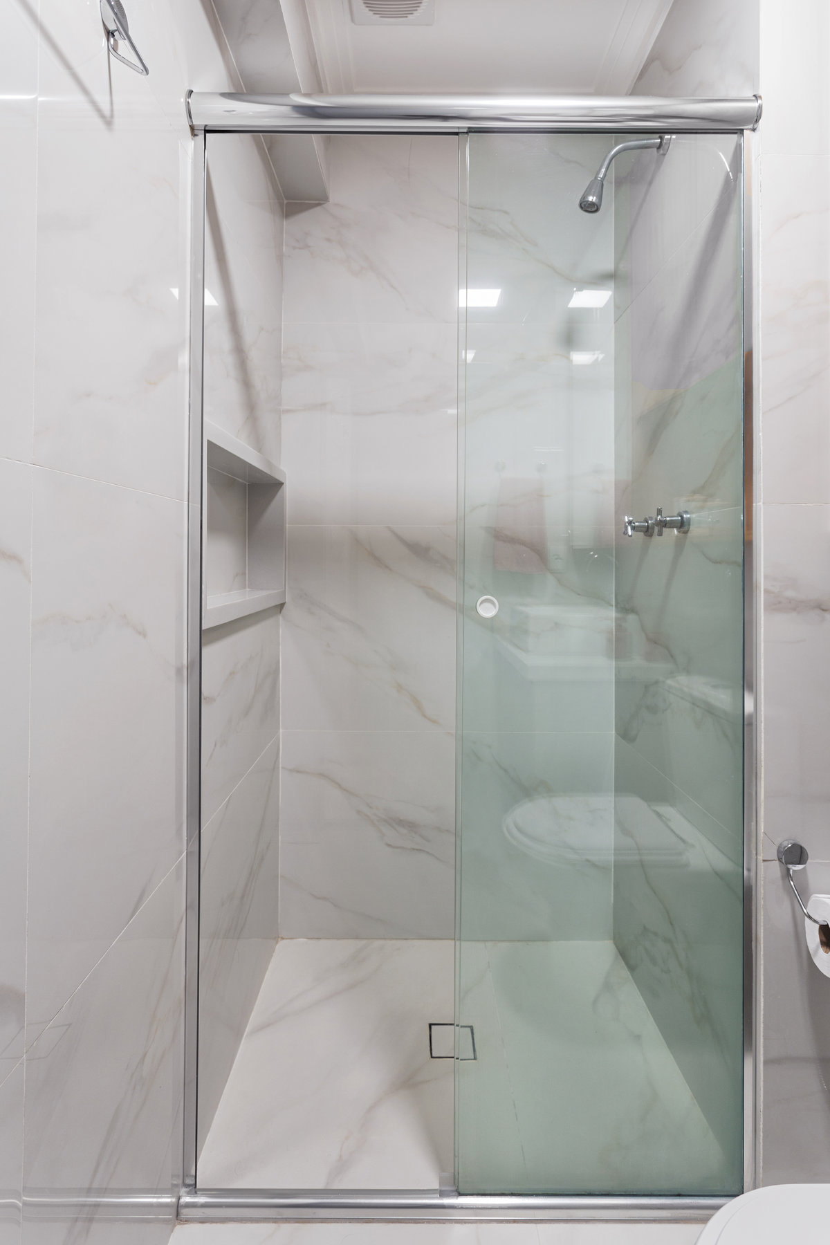 A suíte master foi revitalizada com novas cores, marcenaria personalizada e uma decoração aconchegante, transformando o espaço em um verdadeiro refúgio. O banheiro da suíte ganhou um toque de sofisticação com revestimento marmorizado e um armário em madeira com espelho, mantendo a funcionalidade e a elegância. Por fim, uma suíte neutra e serena foi projetada com móveis em madeira, decoração delicada, um papel de parede inspirado na natureza, revestimento granilite no banheiro e o tom de verde no armário, pensando em receber bebê no futuro. Dois anos depois, esse espaço acolheu com carinho a nova integrante da família, Helena.
